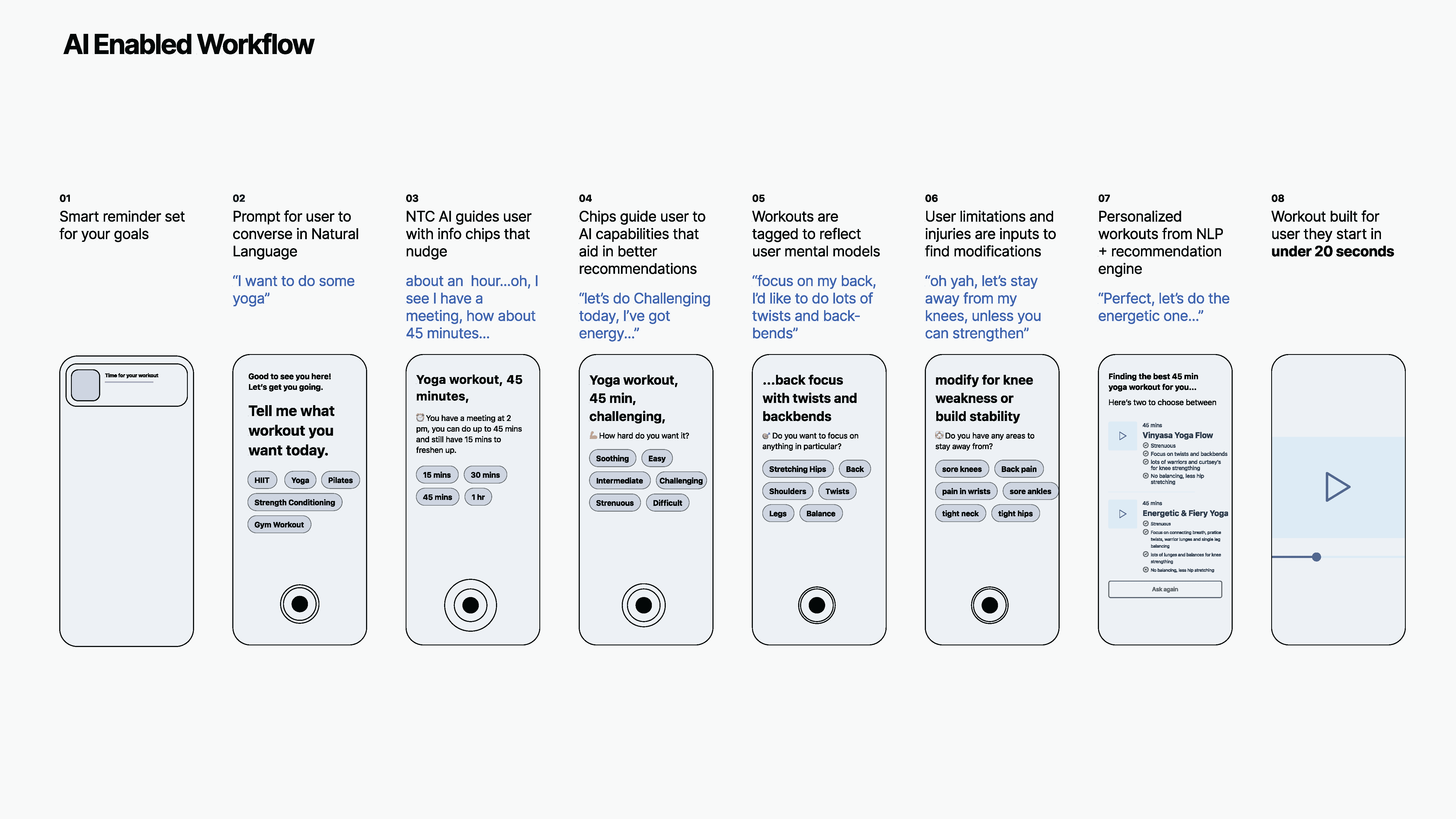 NTC is robust app, but today has many barriers to engagement. These could be easily removed with NLP, harvested data points from video transcripts and adaptive 'grow with me' excercises.