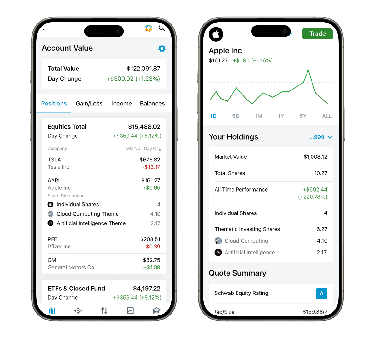 03/ Investors could browse themes, learn what they contained, and purchase with the same ease as checking out on Amazon—but with the depth and credibility of Schwab’s trading backbone.