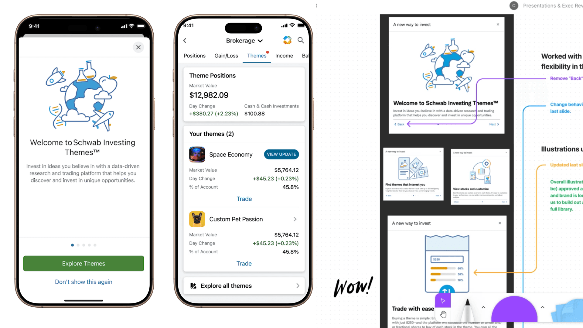 Schwab was launching it's first values-based investing product reaching both Gen Z and Baby Boomer investors. I led the Product Design team to deliver —from concept through launch—a high-impact, trusted trading experience allowing traders to explore and buy bundles of curated “themes,” built on novel IP under aggressive timelines.